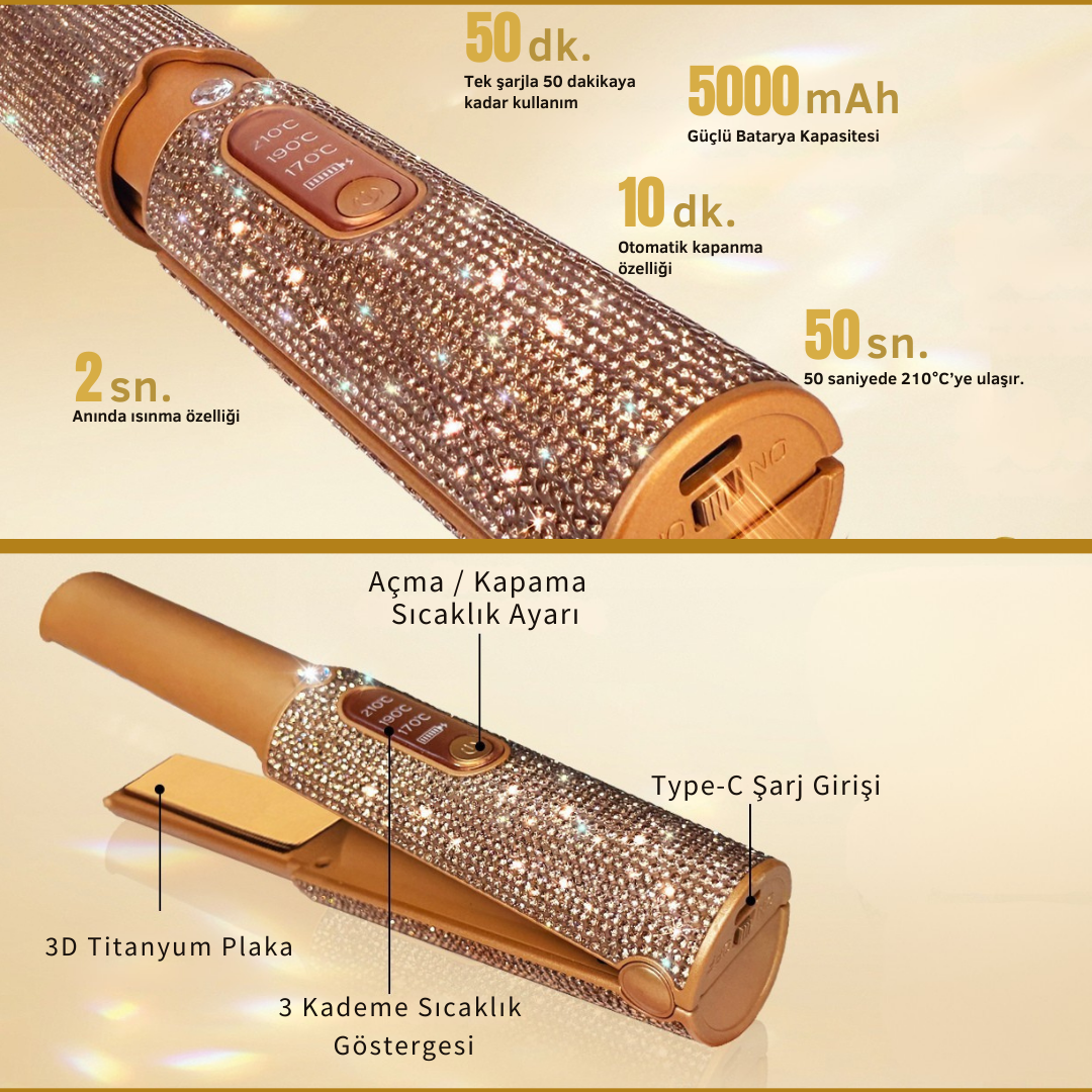 Kablosuz gücü, premium tasarımı ve saç dostu titanyum plakalarıyla stil artık senin kontrolünde.